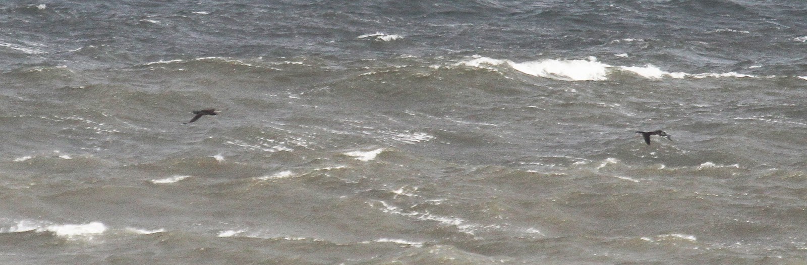 I got them in my scope and watched them for perhaps four or five minutes as they made their way north. They were just silhouettes for the most of the time, but every now and again the sun caught their plumage as they banked, revealing the black-bordered orange underwing, yellow throat and bright green upperparts of the two juvenile